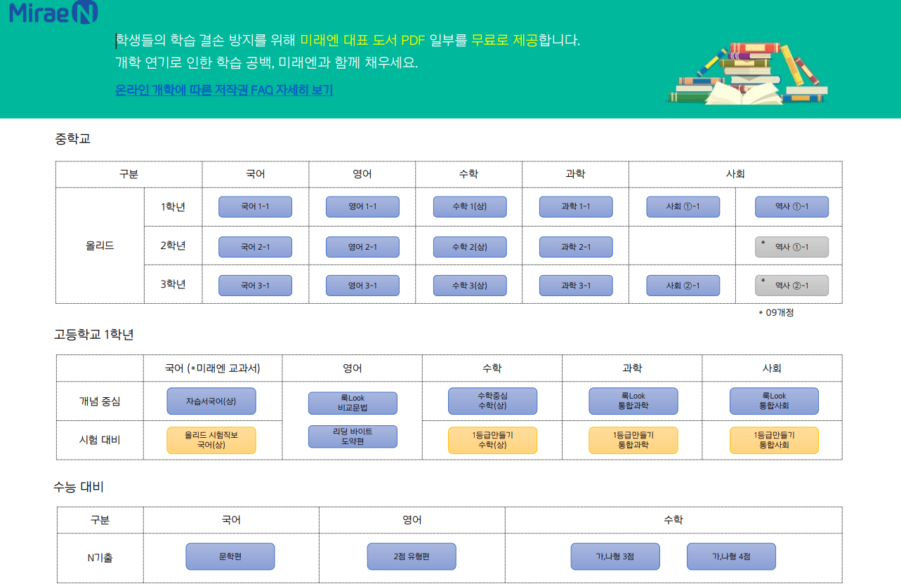 미래엔에서 자사 교과서 PDF를 무료로 제공하고 있어 학생들의 부담이 줄어듭니다.