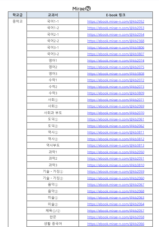 미래엔교과서 PDF 교과서별 E-Book 다운로드