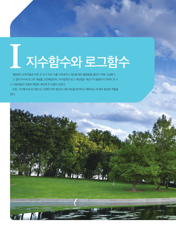 미래엔 수학1 교과서는 크게 지수함수와 로그함수, 삼각함수, 수열의 세 단원으로 이루어져 있습니다.